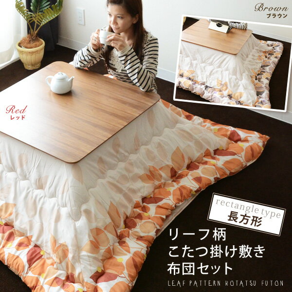 リーフ柄 こたつ掛け敷き布団セット 長方形 こたつ布団セット こたつふとん こたつぶとん 炬燵布団 コタツ布団 こたつ 厚掛け お布団セット あったか 【送料無料】【あす楽対応】 エムール